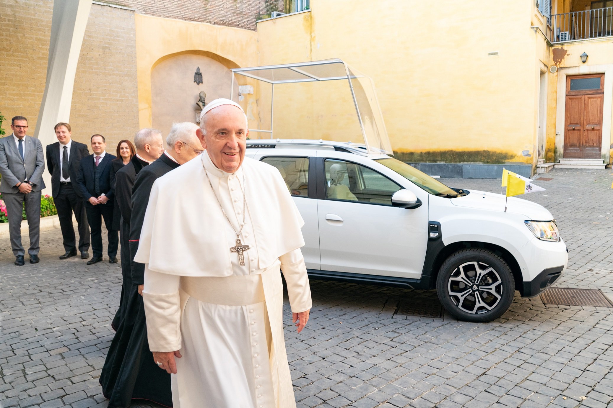 Z donacijo “papamobila” Vatikanu Skupina Renault ponuja svoje izkušnje proizvajalca vozil za zadovoljitev mobilnostnih potreb papeža Frančiška. »S tem darilom Njegovi Svetosti Skupina Renault obnavlja svojo močno in nenehno zavezanost k postavljanju ljudi v središče naših prioritet« je ob predaji vozila izjavil Xavier Martinet, generalni direktor družbe Groupe Renault Italy.