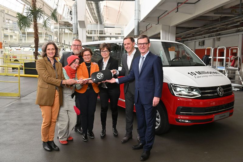Proizvodni jubilej na dan ustanovitve: točno 63 let že v tovarni Hannover-Stöcken proizvajajo gospodarska vozila in s tekočega traku je zapeljalo 10-milijonto vozilo. Jubilejni 9-sedežni rdeče-bel model T6 Caravelle je znamka Volkswagen Gospodarska vozila podarila otroški bolnišnici Hannoversche Kinderheilanstalt