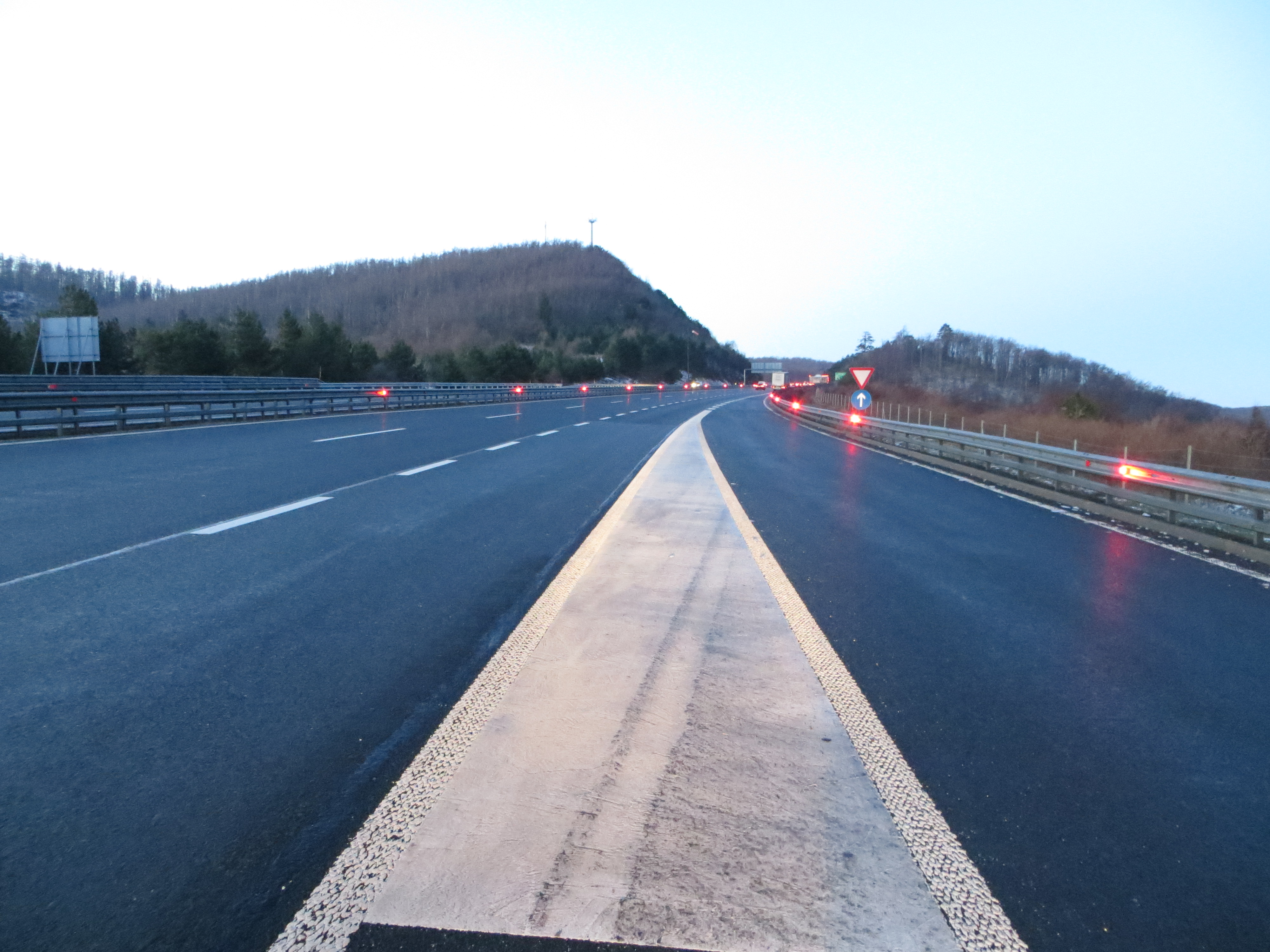 Vsem tem ukrepom se je v mesecu decembru pridružil testni sistem vidnega vodenja prometa v primeru megle na Golem vrhu (odsek avtoceste A1 med Senožečami in razcepom Nanos). Sistem vključuje cestne vremenske postaje, ki v primeru zaznave zmanjšane vidljivosti (glede na stopnjo megle) samodejno vklopijo osvetlitev s svtečimi diodami na obeh straneh smernega vozišča.