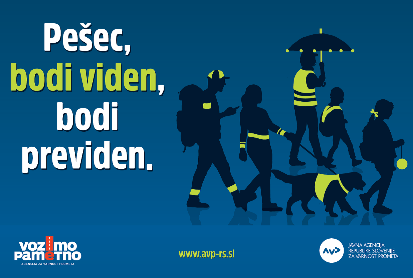 V ospredju ranljivi udeleženci - pešci, predvsem v obdobju, ko se dnevi krajšajo in je vidljivost na cestah slabša>>