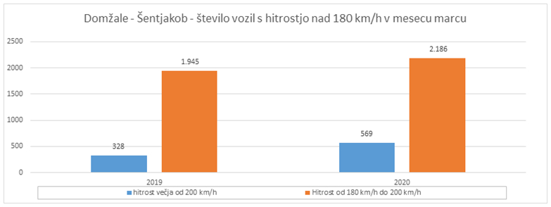Tako so na primer števci prometa na odseku avtoceste med Domžalami in Šentjakobom v letošnjem marcu zaznali 12-odstotno povečanje števila voženj med 180 in 200 km/h v primerjavi z lanskim marcem, pri vožnji nad 200 km/h pa povečanje primerov glede na enako obdobje lani znaša kar 73 odstotkov. Še zlasti problematično je dejstvo, da se največje število prekoračenih hitrosti zgodi v dnevnem času, ko je tudi sicer na cestah največ vozil, kar pomeni, da takšni neodgovorni vozniki ogrožajo življenja in varnost preostalih voznikov, ki se v tem času vozijo po nujnih opravkih oziroma na delo v službo.