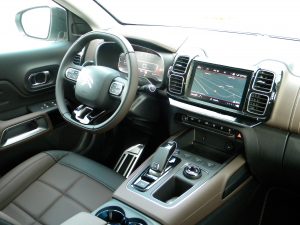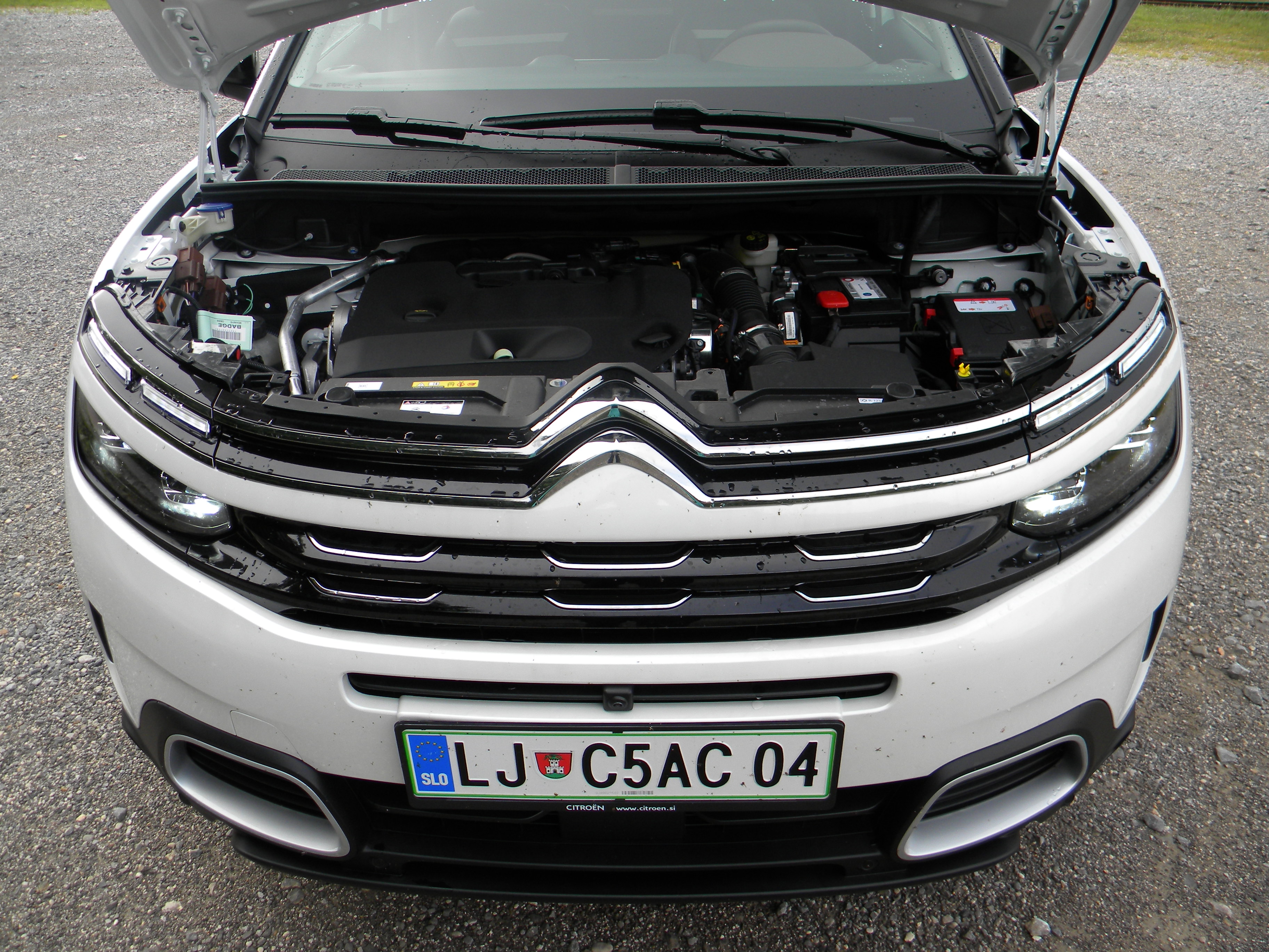 Prijetno presenečenje je vzmetenje s programiranimi hidravličnimi omejevalniki, ki pripomorejo k izdatnejšemu blaženju cestnih grbin. Tehnično je ta dodatek sicer precej daleč od nekdanjega že skoraj pozabljenega hidraktivnega vzmetenja, je pa precej učinkovit. Nekoliko začudenja vzbuja glasnost 2,0-litrskega turbodizelskega motorja, ki v navezi z 8-stopenjsko avtomatiko deluje zelo uglajeno in brez obotavljanja uboga voznikov ukaze že brez nastavitve na športni vozni način. Sunkovitega pospeševanja ni, niti ga v avtomobilu, ki stavi na udobje, ne gre pričakovati. Bolj je zaznavna odsotnost štirikolesnega pogona, ki ga v nobeni kombinaciji pri tem avtomobilu ni. Nekakšen nadomestek je izbirnik za različne vozne podlage, a vrtenje okroglega stikala za prilagajanje razporeditve navora je bolj pesek v oči, saj ne more nadomestiti gnanega oprijema vseh štirih koles. Tako malce resnejša vožnja s C5 Aircrossom po brezpotju ostaja pobožna želja, kljub temu, da je od tal oddaljen kar 23 centimetrov.