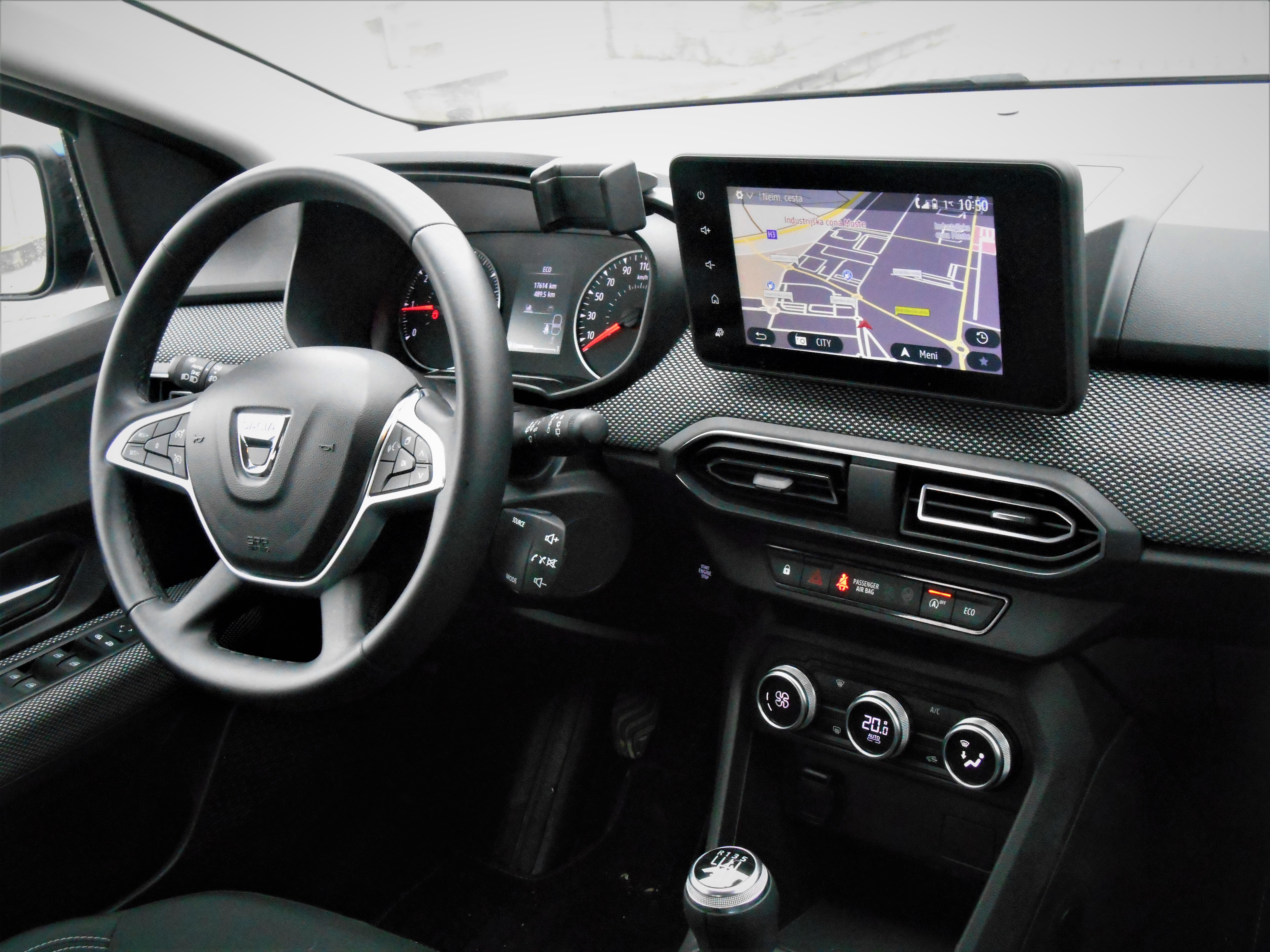 Digitalizacija je v svet romunske avtomobilske znamke vstopila le delno, a tega ne navajam v slabšalnem pomenu. Merilnika hitrosti in motornih vrtljajev sta namreč ostala analogna, a sta zelo dobro pregledna, čeprav brez živobarvne grafike in migetajočih številk. Zabavne elektronike je povsem dovolj na velikem osrednjem komunikacijskem zaslonu, ki je kooperativen, pregleden in uporabniško prijazen. Ob njem je lahko še snemljiv nosilec za pametni telefon, obe napravi pa se seveda znata povezati in komunicirati.