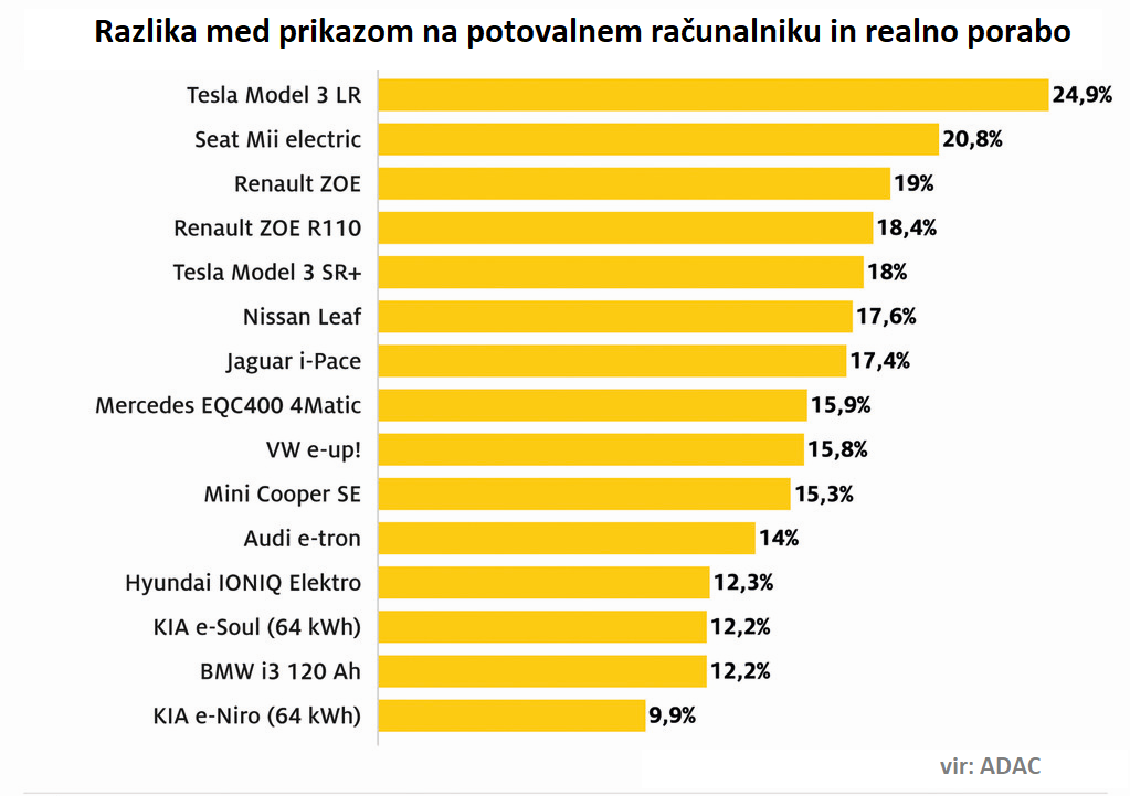 Kljub vse večji opevanosti električnih avtomobilov in povečevanju prodaje, se zdi, da ima elektrifikacija mobilnosti kar nekaj napak. Te niso samo lepotne, ampak tudi zelo konkretne, med njimi tudi podatki o dejanski porabi električne energije, ki so pravzaprav v posmeh zagovornikom električnih pogonskih sklopov. Pri nemškem avtomobilskem klubu ADAC so namreč ugotovili, da vgrajeni potovalni računalniki v električnih avtomobilih niso dali prave slike energetske bilance, saj med polnjenjem ne vključujejo izgub.
