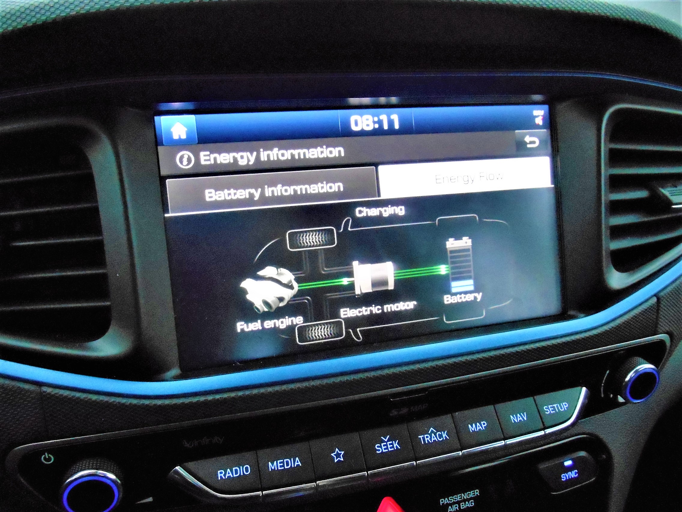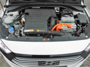 V vmesnem obdobju je dobro, če električnemu motorju pomaga bencinski pogonski stroj, kajti njuno sodelovanje zagotavlja precej velik doseg, hkrati pa tudi krajše razdalje, ki jih avtomobil lahko premaga zgolj z elektriko. Z enim polnjenjem baterije (na običajnem gospodinjskem omrežju traja dve uri in četrt, na hitrih polnilnicah pa 80 odstotkov zmogljivosti pridobi v dvajsetih minutah) priključno hibridni Ioniq lahko na elektriko prevozi do 63 kilometrov, a na zmanjšanje dosega vpliva kar nekaj neugodnih dejavnikov, med drugim tudi nizke temperature. Ko 44-kilovatni sinhronski električni motor nima več energije, nastopi 1,6-litrski atmosferski bencinski štirivaljnik, ki poskrbi, da je avtomobil dovolj hiter. V idealnih okoliščinah in ob primerno zmerni vožnji je poraba bencina teoretično le dober liter na 100 prevoženih kilometrov, izpusti toplogrednih plinov pa so vzorno nizki. Seveda je veliko odvisno tudi od tega ali se voznik odloči, da bo varčeval in pritisnil stikalo za ekonomično vožnjo, ali mu je ljubši športni program za več vozne dinamike, realnost pa je takšna, da je za 100 kilometrov poti dovolj nekaj kapel manj kot štiri litre. Zmogljivosti so popolnoma zadostne za zgledno avtocestno potovanje in način upravljanja je prilagojeno lahkoten za vožnjo v gostem mestnem prometu.