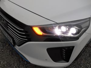Presojanje o oblikovalskih potezah petvratne kombilimuzine s tako imenovanim »hitrim« zadkom skoraj nima smisla, kajti Ioniq je bil že v razvojni fazi predviden za hibridni in električni pogon. Vsekakor pa je zunanjost takšna, da med štirikolesno cestno pločevino bolj privlači kot odvrača poglede. Digitalizirana armaturna plošča z visokoresolucijskim zaslonom, na katerem se izpisujejo podatki merilnika hitrosti, stopnja napolnjenosti baterije, količina goriva in podobno, je v skladu s sodobno zasnovo avtomobila. V višjih nivojih opreme je del opreme tudi navigacijski sistem, ki ga je mogoče povezati z aplikacijami na pametnih telefonih, ne manjkajo niti površina za njihovo brezžično polnjenje, niti številni asistenčni sistemi za varnost in udobje. No, morda bi nekaj običajnih stikal vseeno kazalo zemnjati z digitalnimi, ampak to bi hkrati zahtevalo tudi več časa na njihovo privajanje.