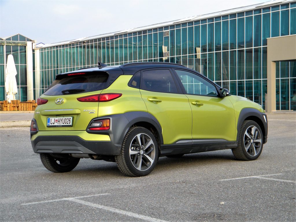 Hyundaijev športni terenec Kona privablja številne radovedne poglede, a ima že nekaj časa tudi precej ostrih tekmecev. Seveda gre za avtomobil, ki naj bi bil natanko tisto, kar si ta čas menda želijo predvsem evropski kupci, to pa je terensko dvignjen, privlačno oblikovan in prostorsko prilagodljiv ter uporabenn štirikolesnik. Priznati je treba, da ob živahni rumeni barvi v katero je bila odeta testna Kona, zaigra srce in vsaj za nekaj trenutkov se tudi priletnejši voznik počuti mladega in razposajenega. Kar pri človeku naredi obleka, pri avtomobilu naredijo dodatki in zajetne plastične obrobe blatnikov in pragov ter agresivni sprednji del z lučmi v tehniki svetečih diod, naredijo ta avtomobil bolj samozavesten kot je v resnici.