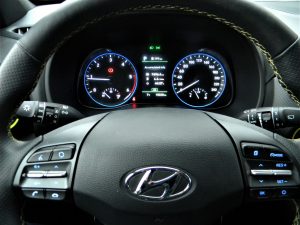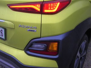 Ker ni čistokrvni terenec, je treba razumeti, da je elektronsko nadzorovani pogon namenjen le slabšim makadamskim cestam in lažjim brezpotjem. Obstaja tudi stikalo za polovično porazdelitev navora med sprednji in zadnji kolesni par, ampak pretiravati vseeno ni priporočljivo. Zato pa se štirikolesno gnana Kona odlično znajde na mokri ali nekoliko zasneženi cesti ali takrat, kajti občutek stika koles s podlago je precej boljši kot zgolj s sprednjim pogonom.