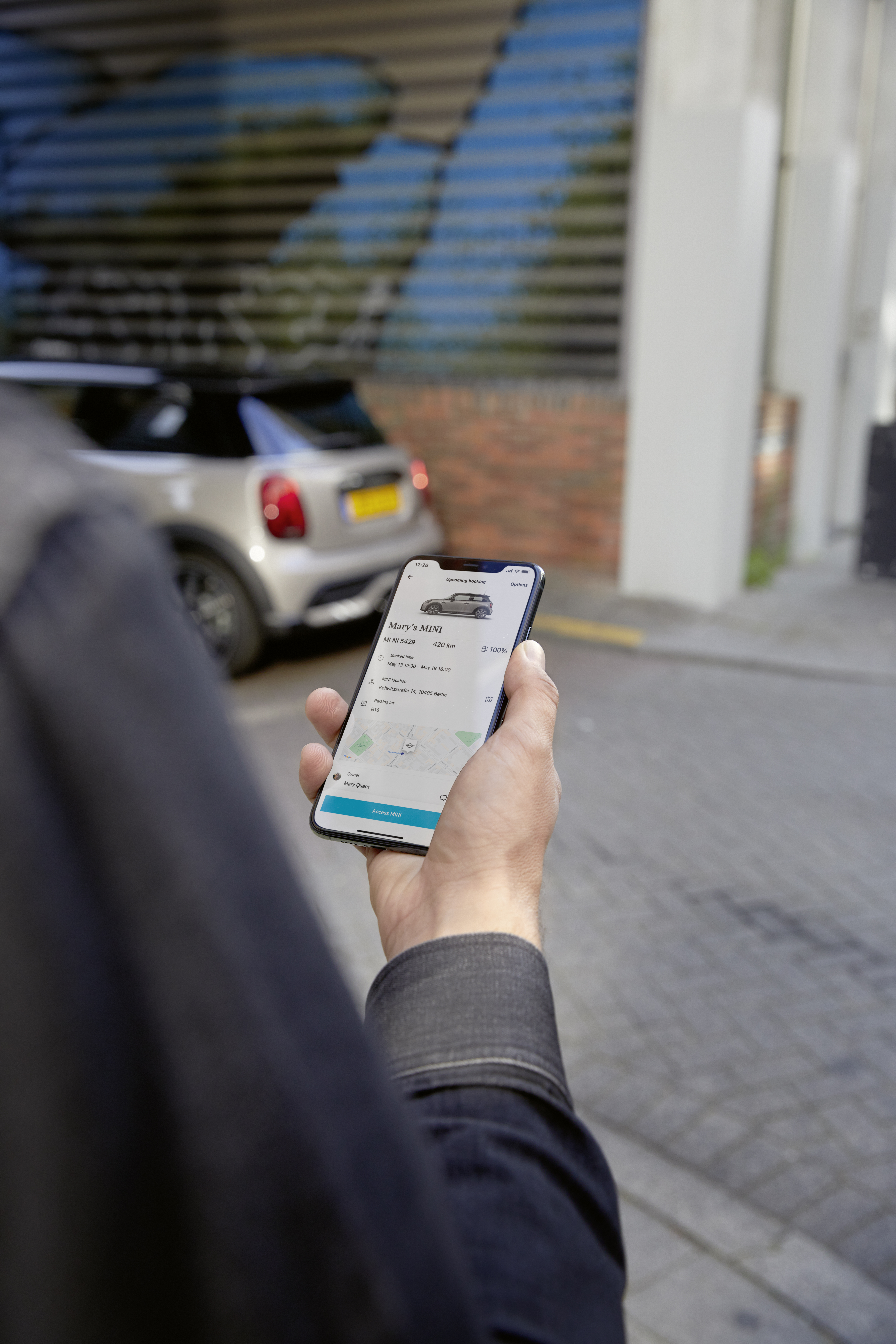 Takoj po namestitvi uporabnik k souporabi svojega vozila lahko povabi družinske člane in prijatelje, če imajo naloženo aplikacijo. Če želijo vozilo uporabljati določeno časovno obdobje, lahko prek aplikacije pošljejo zahtevo lastniku., ki se mu prikaže v koledarju in jo lahko sprejme in upravlja tam. Preden se rezervacija začne, gostujočemu vozniku pošljejo koristne informacije o avtomobilu, na primer njegovo lokacijo in doseg oziroma obstoječo napolnjenost baterije, če gre za električni model. Uporabnik potrebuje internetno povezavo le na začetku rezervacije. Od takrat naprej njihov pametni telefon z brezžično povezavo komunicira z modulom za skupno rabo, kar omogoča interakcijo z avtomobilom brez spletne povezave. Mini Sharing je zato mogoče brez težav uporabljati na podzemnih parkiriščih ali krajih s slabo omrežno pokritostjo.