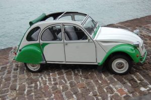 -Zgodba vozila 2 CV se je začela leta 1936. Takrat so se torej začele prve študije o “ljudskem vozilu”, ki je imel zelo enostavno definicijo: “dežnik nad štirimi kolesi” in ki je pri realizaciji odločno zapustil uveljavljeno miselnost