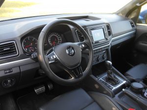 Motor se vrti gladko, kultivirano, tudi dovolj tiho, da v potniški kabini ne povzroča pretiranega hrupa. Visoka raven udobja je tisto kar v tem razredu postaja vse bolj pomembno in Amarok je po vsej verjetnosti spet pri vrhu. Prednja sedeža sta odlična, zadaj je udobje na povprečni ravni, kakšnega prostorskega razkošja pa ni. Vozniku, ki ima pred seboj trikraki v usnje oblečen volanski obroč in urejene merilnike, se bolj zdi, da sedi v luksuznem terencu kot v odprtem terenskem dostavniku in tudi vzmetenje je dobro uglašeno med čvrstostjo in udobjem.